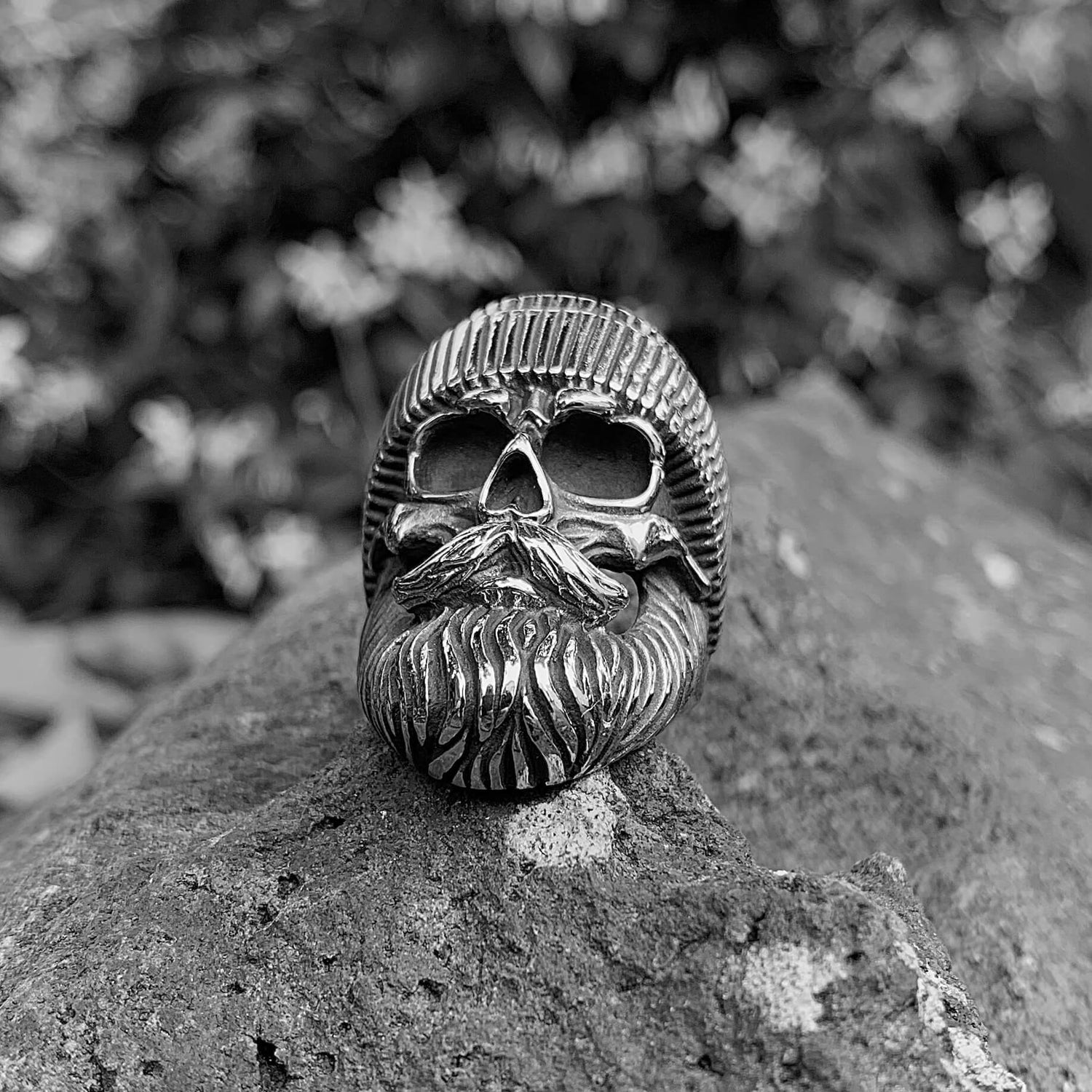 The Beanie Skull Ring, featuring a beanie-wearing bearded biker Skull design.